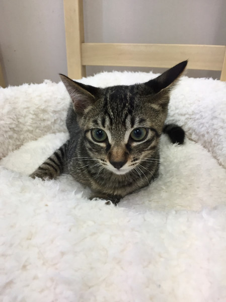 | 特徴(性格など) | ボクはもりもりくん。 いつも元気に遊んでるよ! 人間のベッドでのびのびして寝るのも大好きにゃ。寝てたらナデナデしていいよ。 一緒に暮らしてる女にゃの子たちからはモテモテにゃんだ、ボクカッコいいからかな? ご飯はカリカリも缶詰めも何でも食べるし、チュールも大好きにゃ。 ボクは運動神経も抜群だから、高いところにもひょいひょいって登れちゃうんだ! 一緒に遊んでくれて、ナデナデしてくれる家族がお迎えに来てくれるって教えてもらったの。 お迎えに来てね! ボクいい子で待ってるね! ――――――――――――――――――――――――――――――― お目目くりくりのイケメンキジトラの男の子のご紹介です。 運動神経抜群で甘えん坊、撫でたらゴロゴロ、抱っこもOKです。 まだ遊びたい盛りなので、猫じゃらしなどのおもちゃで遊ぶのが大好きです。 先住とも仲良しで、先住お兄ちゃん猫にはべったり甘えて付いて歩いています。 お昼寝は先住お兄ちゃんに抱きついて寝ています。 同じく一緒に保護したキョウダイのまるまるちゃんと大の仲良しです。一緒に保護生活を送る子猫たちとも、とても仲良くしていて、毛繕いのしあいっこをしています。 同じキョウダイでも、性格は全く真逆で、まるまるちゃんは三毛猫のメスちゃんなので、シャイでツンツンタイプ。もりもりくんは甘えん坊で、抱っこもナデナデも大好きです。 全く性格の違うキョウダイですが、ウマが合うのだと思います。 段ボールハウスなど隠れられる場所があると最高です。ケージだと出せ出せとうるさいと思います。 最初だけ、フリーにすると隠れてしまうかもなので、この子達を迎えてくださる方は、ケージか段ボールハウスのご用意をお願いします。 兄妹仲良しですが、先住の男の子とも仲良くできると思います。 避妊、去勢手術をしてからお届けいたしますので、ある程度のお留守番も問題ありません。 譲渡会スタッフまで、ご相談ください。 かわいい子ですので、ぜひとも、よろしくお願い申し上げます。 |