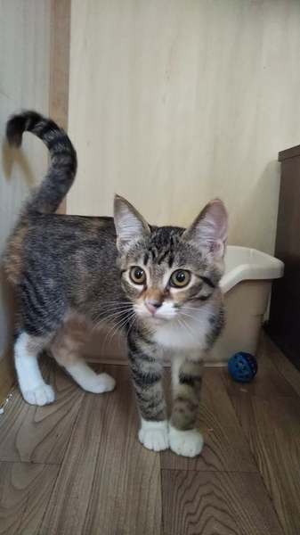 | 特徴(性格など) | アタチは、みずほです キジ柄の三毛猫だよ。 アタチ達、ほんとは、4キョウダイいたんだ。 でも、1匹はお空にいっちゃったんだって。 だから、残されたあなた達は、うんと幸せになりなさいって言われたよ。 アタチね、キョウダイの中では、一番のビビりにゃんだ まだ、どーやって人に甘えていいかが、わかんにゃいの でも、毎日、キョウダイ達と一緒に、仲良く元気に過ごしているよ! 特に、同じキョウダイのタケルくんとは大の仲良しにゃんだよ アタチ、ジョートカイに出るのはドキドキだけど、がんばるね。 ビビりのアタチだけど、どうぞ、よろちくおねがいしますにゃ ―――――――――――――――――――――――――――――― キジ柄の三毛猫ちゃんのご紹介です。 美猫ちゃんで、とってもかわいい子ですが、ビビりちゃんです。 キョウダイの中で、一番の怖がりさんで、まだどうやって人に甘えていいかがわからない子です。 みずほちゃんを保護した経緯ですが、元々4キョウダイで保護いたしました。 既に1匹は、ガリガリの栄養失調状態で、出来る限りの医療を施しましたが、残念ながらお空にいってしまいました。 残された三キョウダイが、みずほちゃんと、同じく譲渡会に出場するうずめちゃんとタケルくんです。 この子達は、母猫が点々と餌場を変えては子猫を連れ回し、守り抜いた子達だったのです。 過酷な現場でしたから、母猫も天敵達から子供を守ろうと必死だったのだと思います。(母猫さんは避妊手術後に地域猫として暮らしております) そのせいか、母猫が野良訓練をしっかりとしていた為、保護した当初はそれこそシャー!シャー!の手強い子達でした。 それでも、保護生活を長く過ごして行くうちに、家庭猫としては随分と慣れてきました。 最近は、ケージから出て、フリー生活を謳歌し、みんなと遊びまわってます。 人よりは、猫の方が好きなようです。 特に、お写真にもあるように、同じキョウダイのタケルくんと一緒に遊ぶことが多いです。 ちゅ〜るは舐めてくれますが、抱っこはまだまだできません。 まだまだ伸びしろがある子達で、これからどんどんと人馴れしていく子達です。 他の猫ちゃんとの相性は、全く問題ありません。 猫同士のコミュニケーションは、抜群であり、特にうずめちゃんは、預かり宅の先住猫達から人気があるそうです。 ケージ生活に慣らしてあるので、みずほちゃんを迎えてくださるご家庭は、必ずケージのご用意をよろしくお願いします。 ケージのレンタルの事などは、スタッフまでご相談ください! 不器用な子なので、時間をかけて、ゆっくりと仲良くなっていってくださるご家庭に、是非ともよろしくお願いします。 もし、可能でしたら、タケルくんと一緒に迎えてくださったら、タケルくんもみずほちゃんも幸せです。 |