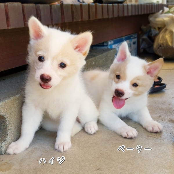 | 特徴(性格など) | 仮名:ハイジ(女の子) 体重:2.0㎏ 犬種:雑種 仮名:ペーター(男の子) 体重:2.3㎏ 犬種:雑種 ⚫️2匹とも元気いっぱいな甘えん坊です。 ⚫️ハイジは好奇心旺盛でアクティブです。 ⚫️ペーターは少し慎重で優しいです。 ⚫️車酔いしません。 【注意事項】 ⚫️仔犬なのでウンチを踏み荒らしたりします。 ⚫️寂しくて夜鳴きや鼻鳴きをします。 ⚫️まだ生後2ヶ月のため、長時間のお留守番ができません。 ⚫️ワクチンはまだ1回なので、お散歩はできません。 (2回目接種以降はお散歩可) ⚫️トライアル(お試し飼育)はありません。 |