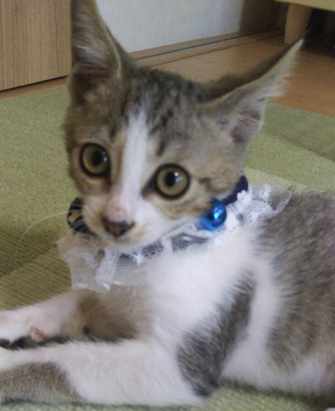 | 特徴(性格など) | 【猫の名前】頑(ガン)ちゃん オス(担当コガ) 【毛色・柄】キジ白 尻尾カギ 病院の駐輪場でバッグに入れられて捨てられていたところを保護された子です。 乳飲み子から育てたたので人が大好き、甘えん坊な子になりました。 初めての方でも飼いやすいと思います 猫ちゃんよりも人が好きな子なので1匹飼いを希望します。 走っても大丈夫な広さのペット可のお住まいで、お留守番の短い家族のある方 家族の一員として生涯大切にして下さるご家族を募集しています。 |