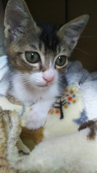 | 里親募集する理由 | 相談者の実家の軒下に風邪を引いてる子猫がいるのを発見、保護されました。 |