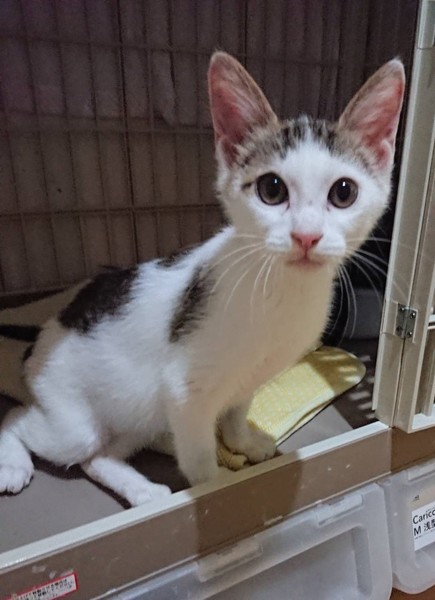 | 特徴(性格など) | 仮名:もずくくん オス 毛柄: 白キジ 推定3月末生まれ エイズ・白血病ウイルス検査 陰性 便検査済み ノミダニ駆除済み ワクチン接種済み 収容された時から下半身麻痺の状態でした。 引き出し、通院したところ、骨折や脱臼などみられませんでした。 おそらく、事故にあい、尻尾に近い背骨を脱臼して元に戻ったのではないかと言うことでした。 排便はできますが、排尿は圧迫排尿です。 朝晩2回の圧迫排尿で、尿漏れはありません。 収容当時に比べ、足が曲がるようになり、他の保護猫とも仲良く遊んでいます。 圧迫排尿は丁寧にご説明させていただきます。 圧迫排尿はコツを掴めば初心者の方でも出来ます。 ハンディのあるもずくくんですが、人懐こく明るい性格で、自分はハンディを何とも思っていない様子です。 前向きなもずくくんを家族としてお迎え頂ける方とのご縁をお待ちしています。 |
