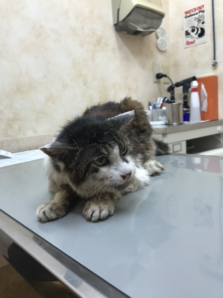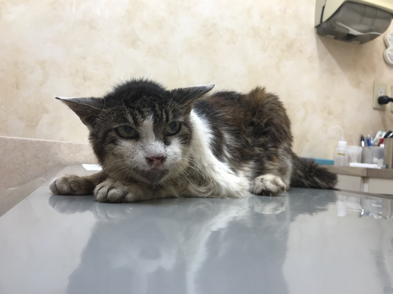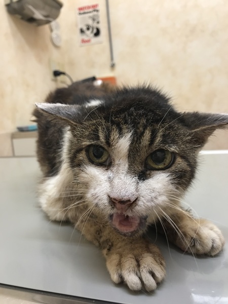 | 里親募集する理由 | ここ数日ぐったりしていたメス猫を保護し、入院させました。 猫エイズと猫風邪にかかっていて、慢性腎不全にもなっています。 猫エイズによる歯肉炎で歯は全部なく、毛づくろいすることもできず、ぼろぼろです。 感染症にかかっているため、猫を多頭飼いしているわたしの家では面倒を見ることができません。 どなたかこの子を飼ってくださる方、この暑い間だけでも看てくださる方はいらっしゃらないでしょうか? 明後日8/20には退院の予定で、炎天下のなか、地面にべたりと横になっているだけで、たぶんこのまま亡くなってしまうと思います。 お引き受けいただけそうでしたら、全身状態をもっとよくしてからおわたししたいと思っておりますが、猫エイズと慢性腎不全は不治のものなので、それをご理解いただいた上で飼っていただけるかたを募集しております。 |