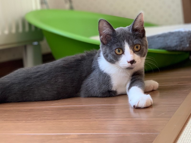 | 特徴(性格など) | 【仮名】ラック 【年齢】推定6月上旬頃生まれ 【種類】MIX 【毛色】ブルー&ホワイト 【性別】メス 【避妊】未 【ワクチン】3種混合ワクチン接種済み 【駆虫】済 【健康状態】良好 【性格】野良猫の子猫だったので臆病ですが、高いところに上っているときは逃げずに触らせてくれます(#^^#)猫じゃらしが大好きです(=^・^=) |