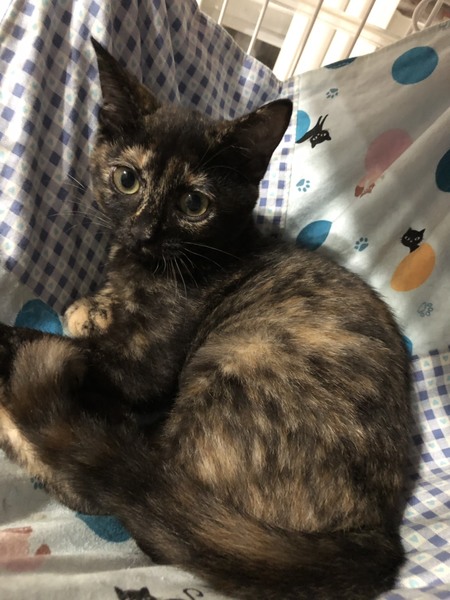 | 特徴(性格など) | サビ柄の3ヶ月の女の子です。 性格はシャイだけど慣れてくるととっても甘えん坊になります。 1匹でこの子だけを可愛がってくれる方募集します。 |