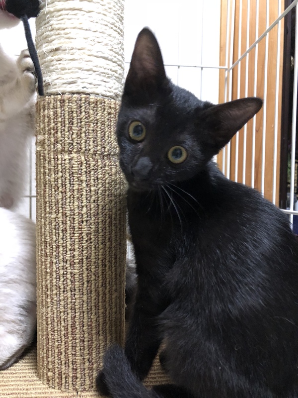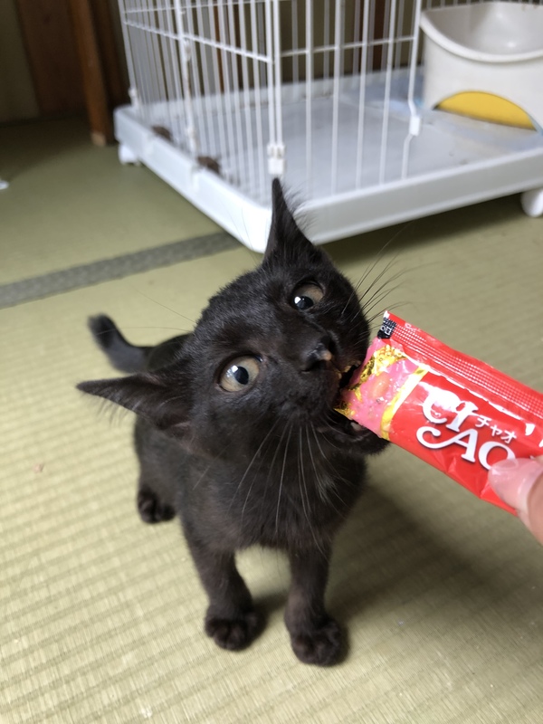 | 特徴(性格など) | 黒猫ちゃんで胸元に少し白毛があります。 甘えん坊ちゃんでお腹をなでなでさせてくれます。 黒猫ちゃんのオスは2匹います。 |