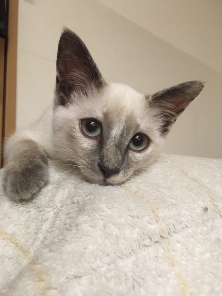 | 特徴(性格など) | 白に近いシャムです!人が大好きです!1匹でのお留守番が苦手なので、昼間猫を見てくれる人がいるご家庭か2匹でお留守番が出来るご家庭を希望します。 | ||