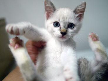 | 特徴(性格など) | 仮名:はりま 淡いブルーの瞳の貴公子。 シャム系の血が入っている様ですので、大人にるに従って、被毛の色が濃く変化していきます。 性格は最初だけ猫被っておとなしくしていますが、すぐに天真爛漫な様子を見せてくれます。 もしかすると結構おもろいやつかも!? 見た目とのギャップ萌えですね♪ 猫エイズ猫白血病 共に陰性 内部外部駆虫済 パルボ遺伝子検査 陰性 ワクチン一回済み 健康優良児です |