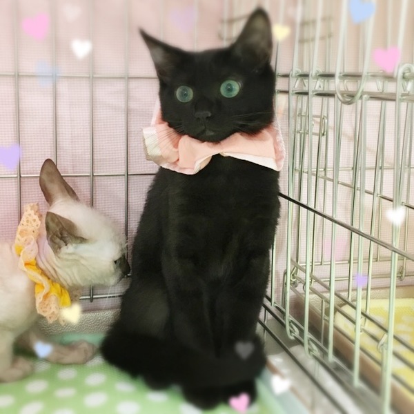 | 特徴(性格など) | 【猫の仮名】 アスタちゃん(担当 河井) 【毛色・柄】 黒色 慣れていますが、初めての人には少し警戒します。 抱っこもできます。 姉妹のユノちゃんと仲良しです。 好奇心旺盛な元気な女の子です。 走っても大丈夫なペット可のお住まいで、家族の一員として生涯大切にして下さるご家族を募集しています。 猫だけのお留守番がないご家族を希望します。 ※ユノちゃんと姉妹です。 ※ユノちゃんと姉妹でもらってくれる方を優先いたします。 |