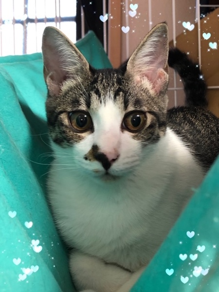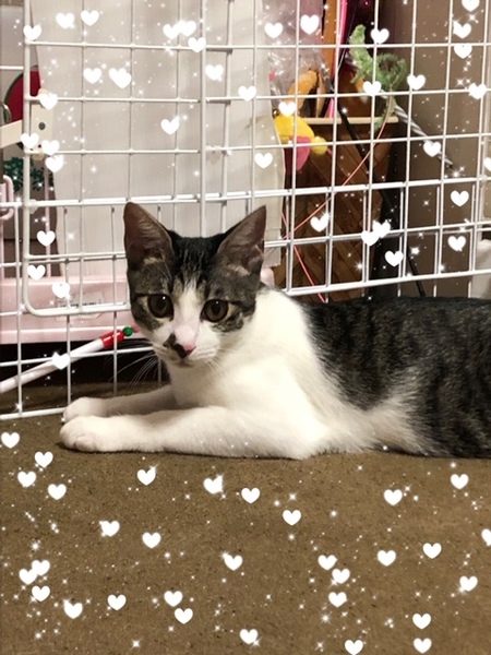 | 特徴(性格など) | 【猫の仮名】 みくちゃん (担当 河井) 【毛色・柄】 キジ白 好奇心旺盛、遊ぶのが大好き、ボールのキャッチが上手です。 元気な女の子です。 走っても大丈夫なペット可のお住まいで、家族の一員として生涯大切にして下さるご家族を募集しています。 猫だけのお留守番がないご家族を希望します。 ※こてつくん、こたろうくん、みおちゃんと4兄妹です。 |