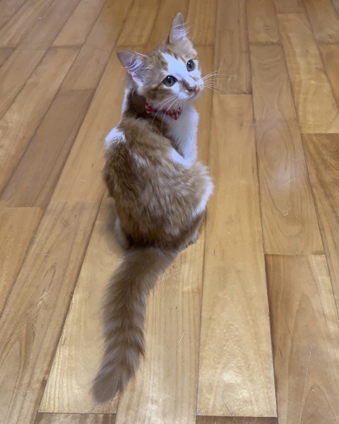 | 特徴(性格など) | 保護猫には珍しい長毛さんです。 茶白で尻尾は長くてストレートです。 子猫らしい無邪気で元気な女の子です。 人にも、猫にも物怖じせず懐けていますし、場所慣れも良いです。 |
