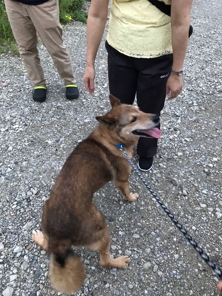 | 里親募集する理由 | 代理投稿です。 中型雑種(現在体重は約14キロ位)推定年齢10歳以上位、保健所から保護した可愛いシニア犬、男の子です。保護した当初は栄養状態も悪かったのが痩せていて12キロ位でした。 先住大型犬♂と相性が合わず、怖がってしまっており、他にも先住犬♀5匹の先住猫達がいる為、なんとか部屋分けをしてきましたが難しく、この子に寂しい思いをさせてしまっています。 最近では先住犬に怯えて家に入るのを嫌がったり、猫の事も苦手な様子で可哀想なのでこの子だけを大事に可愛がってくださる優しいご家庭に迎えていただけたらと思い、新しい家族を探しておりますm(_ _)m お散歩が大好きで最初はグイグイと嬉しそう、元気に走ります!おもちゃをくわえるのが好きでくわえたまま離さずにお散歩したりもしています^_^ お散歩中に会う他犬には尻尾を振り近付いて挨拶も出来ます。小さいワンちゃんが好きな様子です。 血液検査の結果フィラリア陽性でしたが月に一度の投薬治療中、陰転を目指しています。 (投薬治療費はこちらが負担させていただきますm(_ _)m)フィラリアが陰転したら全身麻酔で歯石除去をする予定でした。 大人しく、無駄吠えしません。耳が聞こえていないのか遠いのか、物音にも起きずによく寝てよく食べ元気です。トイレは室内でもしてほしいのですが我慢しているようでお散歩の時にしています。お散歩前の時だけ、行きたいよ〜と要求吠えをする程度です。 過去にどんな怖い思いをしてきたのか、知る由もありませんが手に何かを持っていたり、上から頭を撫でようとしたり急に体を触るとビクっとして怯えてしまいます。 車に乗るのも苦手です。 リードの引き方にも何かトラウマがあるのか当初は悲鳴をあげて鳴いた事もありました。顎下などを普通に撫でる事は問題無いのですが、足やお尻周りも触るのを嫌がる為、ブラッシングやシャンプーがなかなか出来ず、現在は洗い流さないタイプのスプレー式ドライシャンプーを使用しています。。 この子に寄り添い、広い心で受け止め生涯大切に可愛がって下さる優しい素敵な里親様、どうかお願い致します。 残るこれからの余生を、のびのびと幸せに生きてほしいと願っております。 |