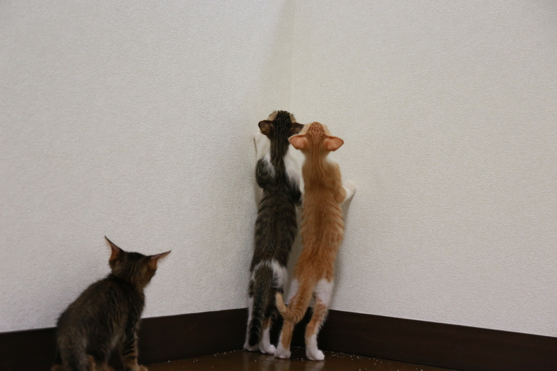 | 里親募集する理由 | 玄関先で水、エサを与えていた野良猫が子猫を産み、その子猫が成長しお腹が膨らんできたので、病院で堕胎させようと思い、家の中に誘いキャリーバッグに入れておりましたが、翌朝バックの中で4匹産んでいました。先住猫2匹がいるので買ってきたケージ内で子育てさせることに。母猫も初産、人間も初めてのことで、ネット情報を屈指し至れり尽くせりの子育てでした。五体満足で何不自由なく元気に育ってくれて感謝ですが、先住猫もいて高齢の飼い主につき、とても飼うことはできません。母猫は去勢後外猫に戻す予定です。 | ||