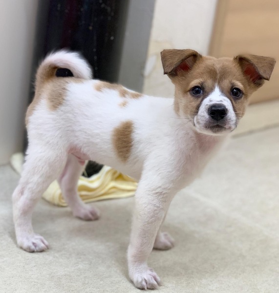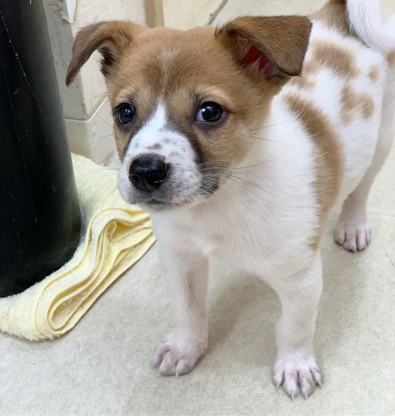 | 特徴(性格など) | 岡山の野犬の子として保護され、当院へやってきました。 雑種らしい個性のある顔と柄がとてもかわいいです。 おそらく中型犬でたれ耳がキュートな男の子になると思います。 性格はややこわがりですが、人には慣れていて他の犬ともよく遊んでいます。 比較的、日本犬の気質に近く、自立しているので成犬になったらお留守番も可能そうです。 |