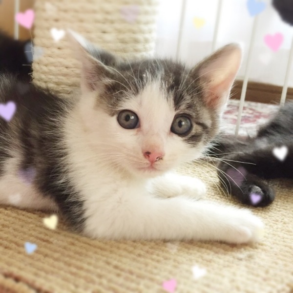 | 特徴(性格など) | 猫の仮名】 聖くん (担当 河井) 【毛色・柄】 キジ白 聖くん兄妹は保護した後、すぐ眠ってしまうくらいなれています。抱っこもできます。 元気なキジ白の男の子です。 猫を飼うのが初めての方でも大丈夫です♪ 走っても大丈夫な広さのペット可のお住まいで、家族の一員として生涯大切にして下さるご家族を募集しています。 猫だけのお留守番が長時間でないご家族を希望します。 ※月ちゃん、ごまちゃんと兄妹です。 |
