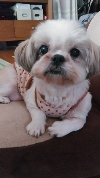 | 特徴(性格など) | ■特徴 仮名 たま シーズー ♀ 10歳位 体重 4.7kg ■性格・暮らし ・体のどこを触られても嫌がりません ・攻撃性はありません ・他犬や猫に対して吠えや嫌がる仕草をすることはありません ・車酔いはありません、ドライブベッドに大人しく乗っています ・お散歩は練習中です ・トイレ練習中です、場所を覚えるまでは気長にお付き合い下さい ・無駄吠えは今のところ一切ありません ・とても人懐っこい性格です ・留守中のイタズラはありません 良い子でお留守番出来ます ■いままで行った医療行為 ・避妊手術 ・歯科処置 ・臍ヘルニア整復 ・血液検査 ・健康チェック ・心雑音なし ・7種混合ワクチン接種 ・フィラリア(-) ・便検査(-) ・マイクロチップ装着 ・左臀部脂肪腫切除(良性) ・肝臓結節組織検査(良性) ■今後行う医療行為 ・狂犬病予防接種 |