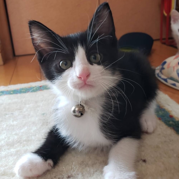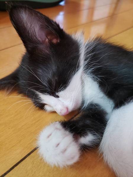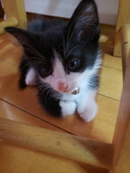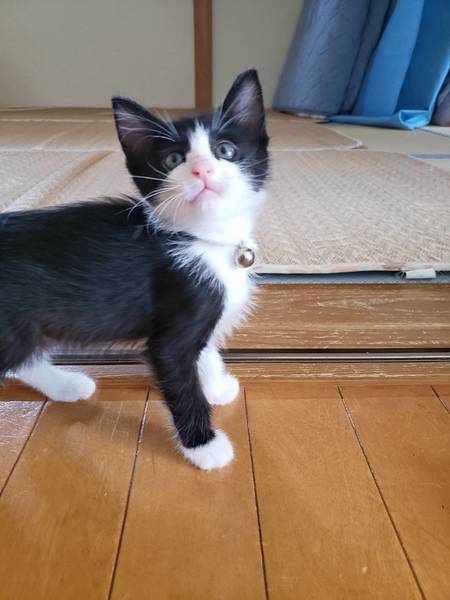 | 特徴(性格など) | 仮に「おにちゃん」と呼んでいます。 白黒のハチワレ。 食欲旺盛、とても人懐っこく元気一杯です。 かぐや姫のおっぱいをチュパチュパ吸っています。 |