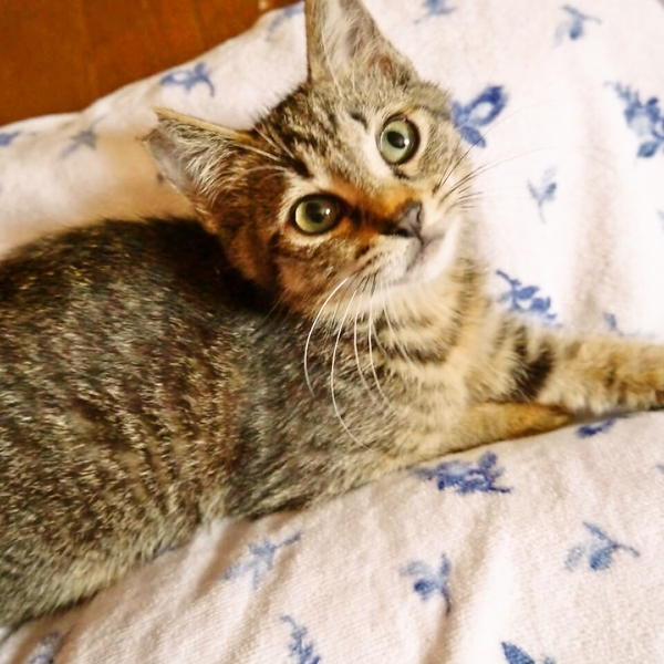 | 特徴(性格など) | 【仮名】ライム ♀ 【毛色・柄】キジ短毛 ゴールドの瞳、長いしっぽ。 子猫特有のフワフワ感が残っていて抱っこした時のちんまり感がたまりません。 最初の数日は怖がって固まるかもしれませんが、攻撃性は一切なく、初対面でも触れます。 おもちゃが大好きで、紙を丸めたものやスリッパとも遊んでいます。 ごはんの匂いがするとどこかで寝ていてもちゃんとケージの前に現れます。育ち盛りです♪ まだお子様猫ですが、お留守番もいいこでできます。 最初はケージにトイレ、ごはん、お水を入れていただいて、徐々におうちになれてくれます。 兄弟ではない大きなおにいちゃん猫の偵察にも果敢に挑み、恐れを知らず遊んで攻撃をしかけています^^ 健康状態良好です。 【医療措置】 ・ワクチン1回接種 (2回目は9月予定) ・ウィルス検査 (エイズ-、白血病-) ・寄生虫駆除 (ブロードラインを毎月) ・避妊手術 *シャンプーも嫌がりません。夏は何回かシャンプーしました。 |