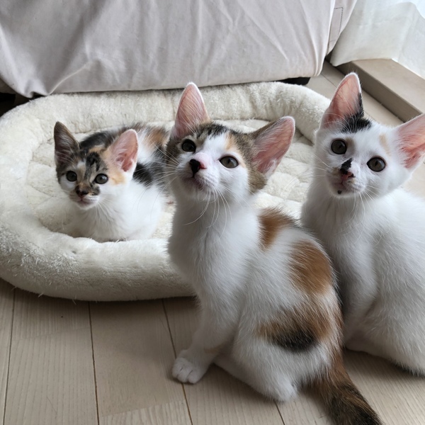 | 特徴(性格など) | かわいい縞三毛です。顔に柄が多く入ってます。兄妹の中ではおっとりな方のいなりちゃん。 とても愛らしく甘えん坊です。 抱っこするとぐるぐる。でも子猫らしく家中を走り回ります。同じくおっとり派ののりまきくんと仲良しです 尻尾はまっすぐ長いです。 兄弟はかつお、のりまき、妹はうにちゃん、エビちゃんと仲良し5兄妹です。 人に慣れてますので共働きの初心者さんにもおすすめですx 健康状態 とても健康で元気です 駆虫 検便 ワクチン (1回目) ウイルス(エイズ・白血病)検査 食べすぎなどで便が緩くなりがちです。 飼育経験やお留守時間、いざという時のお休みの取りやすさなどお聞きしてご相談させていただきます。 |