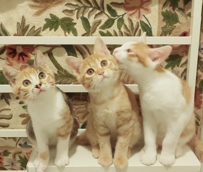 | 特徴(性格など) | とてもかわいい茶色い3兄妹です 三毛:美しい縞三毛です。今は預かり家庭で接客係として頑張っています。人が好き、猫にもフレンドリーないい子です。 茶トラ:メス 茶白:オス 茶トラと茶白もスリゴロさんです。 仲良し兄妹ですので2匹ペアでの譲渡をお願いします。 1匹は他の同じくらいの月齢の子とペアで譲渡したいと考えています。 健康状態 とても健康で元気です ウイルス検査(エイズ・白血病)陰性 ワクチン(1回) 駆虫 検便 シャンプー 爪切り |