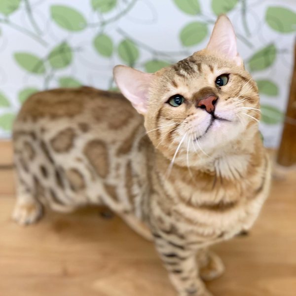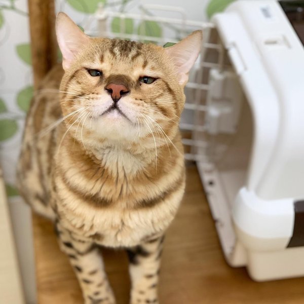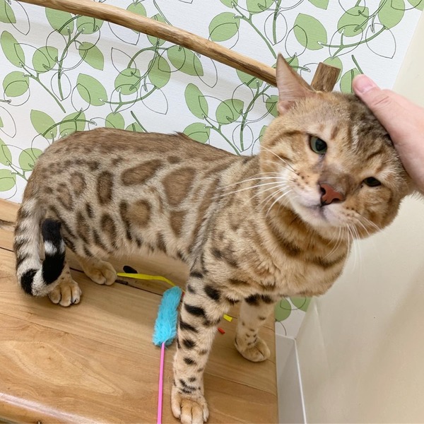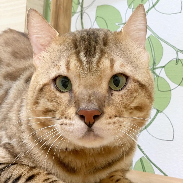 | 特徴(性格など) | 綺麗なヒョウ柄が魅力的なベンガルの男の子です。 半面、そのユニークな表情もみんなから人気です。 レスキュー当時は人なれしておらず暴れたり噛んだりする様子がありましたが、現在ではいつもスリスリしてくる甘えん坊になりました。 |