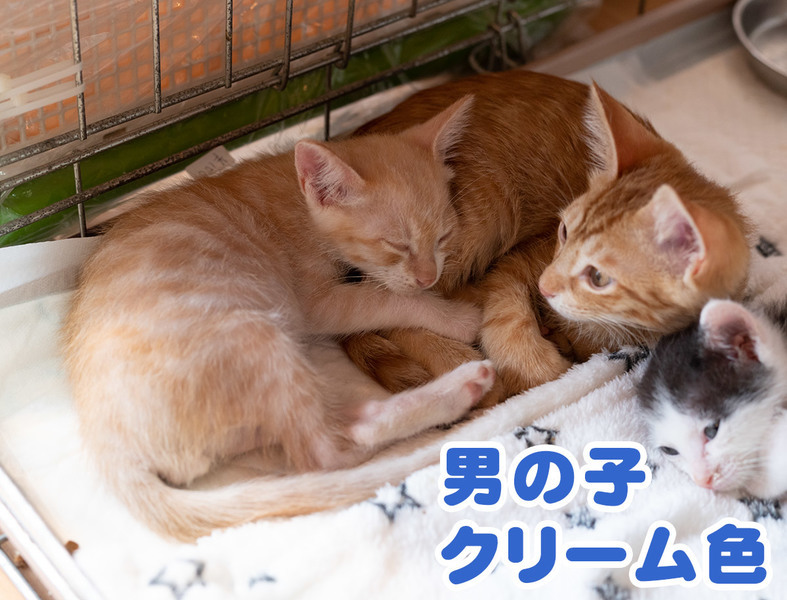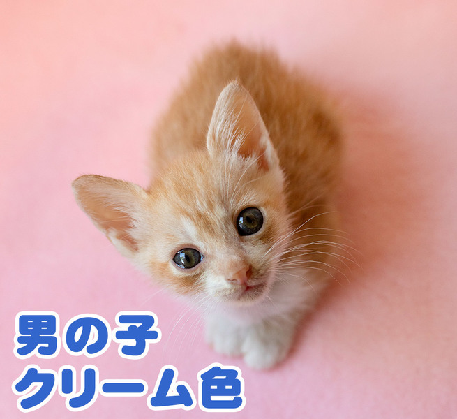 | 特徴(性格など) | とっても可愛くて優しい、クリーム色の茶トラ君です。 駆虫と、ワクチン2回目を済ませました。 小さい時から人間に慣らしています。頭のいい良い子です。文字付きの写真は生後2か月くらいの時です。 |