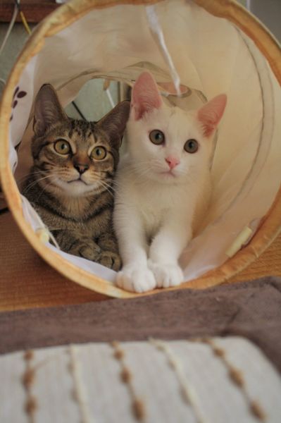 | 特徴(性格など) | キジトラオス 名前仮チョコ君♂ 真っ白メス 名前ルナちゃん♀ お外のネコちゃんだった為人なれ訓練をしてチョコ君は人が平気になりましたが、白猫のルナちゃんも人になれてきました 2匹とも初めはから人にすりすりしたり出来ませんが、飼ってく間には慣れていくと思います。2匹一緒に里親様になって頂けると嬉しいです 共働きの方など御留守場もできる大きさです |