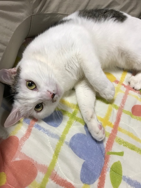 | 特徴(性格など) | 白ぶち猫 白の方が多いと気が強いと言われますが、生れたて保護で世話をしてきたので、人を親だと思っていて、甘えん坊さは保護猫の中でも最上級? ゲージに入れるとスネます。 | ||