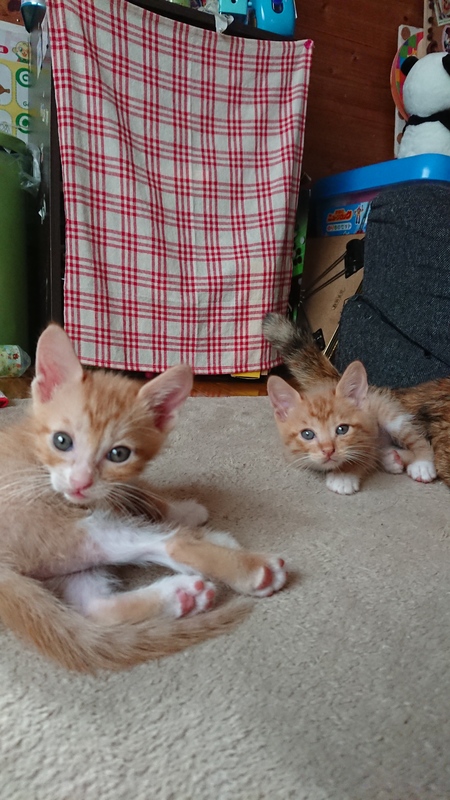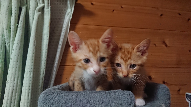 | 特徴(性格など) | 茶トラ混じりの三毛(雄)2匹です! 2匹とも人懐っこくすくすく大きくなっています! トイレを覚えました! |
