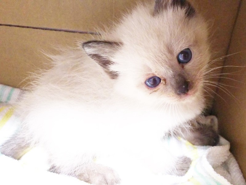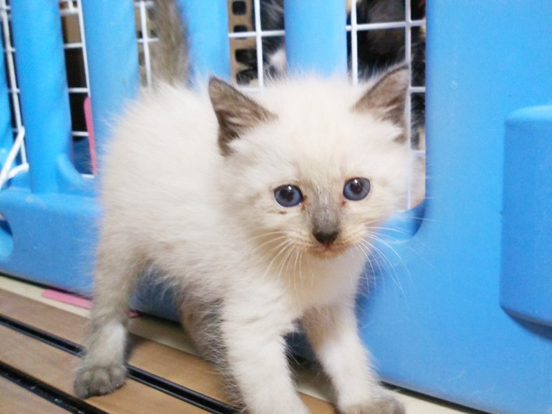 | 特徴(性格など) | かわいいシャムのふわふわ子猫ちゃんです。ミルクで200グラムから、預かりさんに育ててもらいました。 ぴょこぴょこついてきます。 とてもかわいいこです。ぜひ、会いにきてください。 |