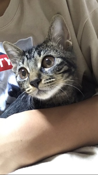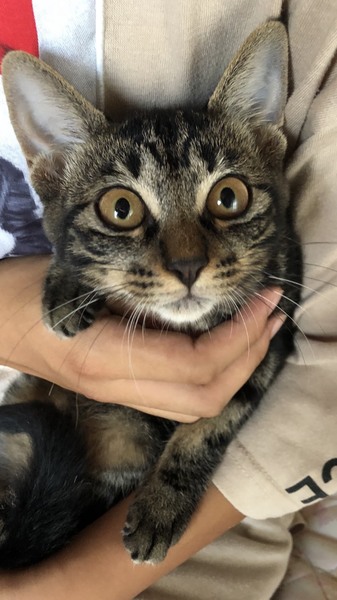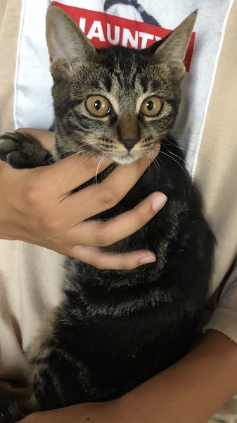 | 特徴(性格など) | 全身キジトラ柄がとってもきれい! 茶色い体にオレンジの瞳が映えます。 とっても元気な女の子です。 アメショに似た模様のため、ちょっと珍しいかも…。 |