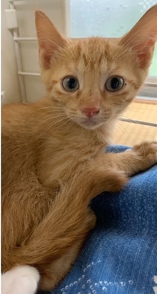 | 特徴(性格など) | 茶トラの男の子 姉弟の中で一番臆病さんですが、遊び始めると運動神経抜群で、活発です。 ご飯を食べるときに、「うみゃ~うみゃ~」と言います(笑) |