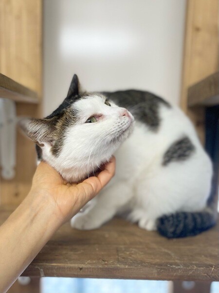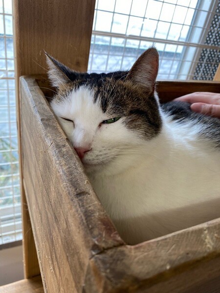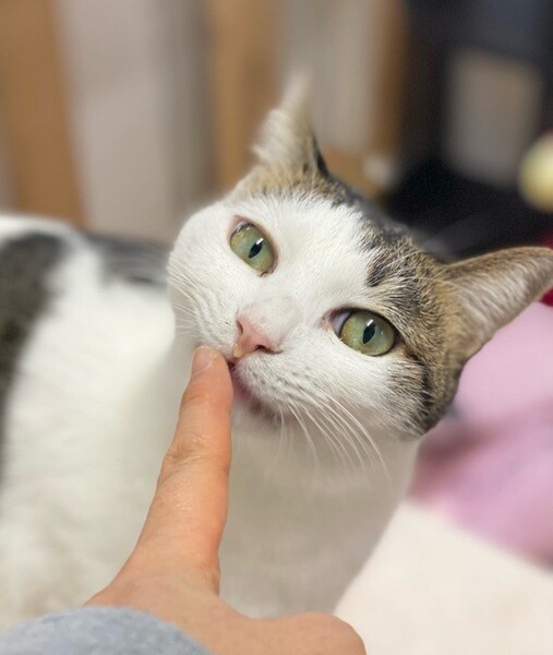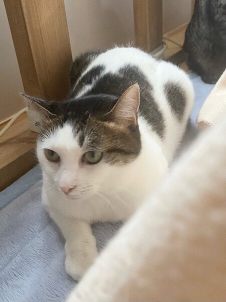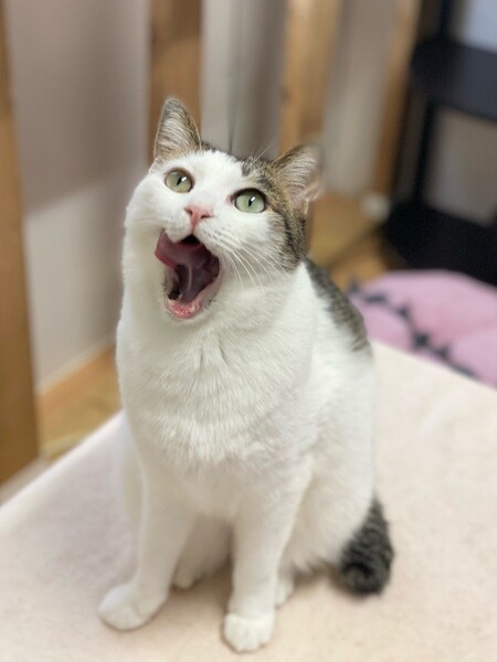 | 特徴(性格など) | お茶目な「カヌレ」ちゃん♡ 自分からスリスリできないけど、抱っこも苦手だけど、玩具で遊んで貰うの大好きな甘えっコ♪ 玩具で遊んで欲しい気分♪な時は、自分からお腹ゴロン♪のアピール 現在、ドライフードを置き餌として缶詰、パウチなどを一日2回程度与えています。 <推定誕生日:2019/4月末> |