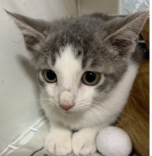 | 特徴(性格など) | 空くんは、ハチワレの男の子です。 知らない人が近づくと、前に出て兄弟を守ろうとしている?様子があります。 かといって攻撃したり怒ったりはしないです。 人が好きでナデナデすると、うっとり眠ってしまう子です。 爪切りなどもおとなしくさせてくれます。 |