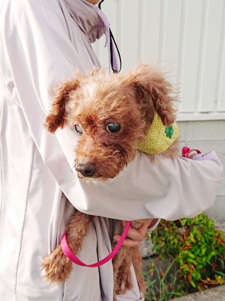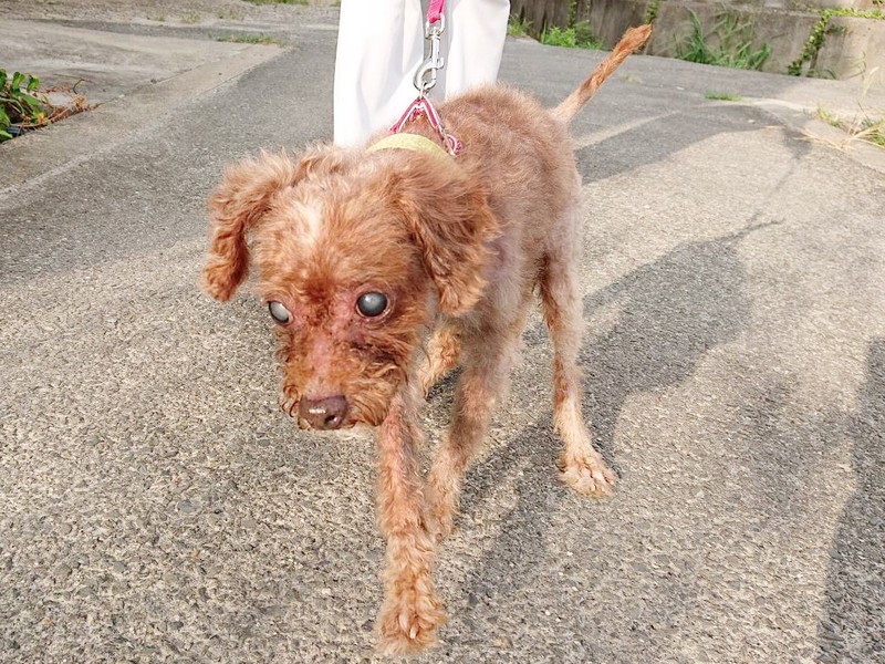 | 特徴(性格など) | トイプードルの男の子です。毛の塊だらけのひどい状態で捨てられていました。首には、鳴くと電気が流れる首輪がきつい状態でついていました。全く鳴こうともしません。 おちんちんも、虐待で人間によって切られていて、お腹も、切られていて本当にひどい状態で保護されました。 5キログラムのスマートなミナミくんです。目があまり見えませんが、散歩もたくさん歩きます。 犬は、飼い主を選べませんが、余生を幸せに過ごしてほしいです。 優しい人間もいるよと、少しでも知ってほしいです。 どうか、ミナミくんを幸せにしてあげてください。 |