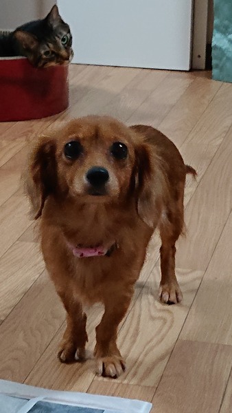 | 特徴(性格など) | Mix 犬も猫も人も大丈夫です。無駄ぼえなし。 トイレはほぼシートに出来ます。お腹を見せて触って~と催促します。 |