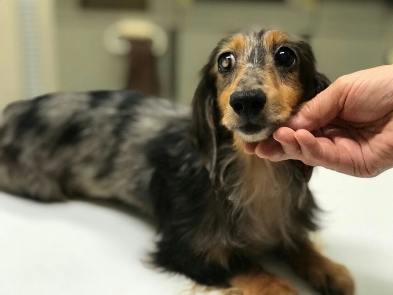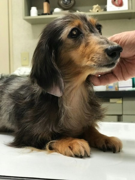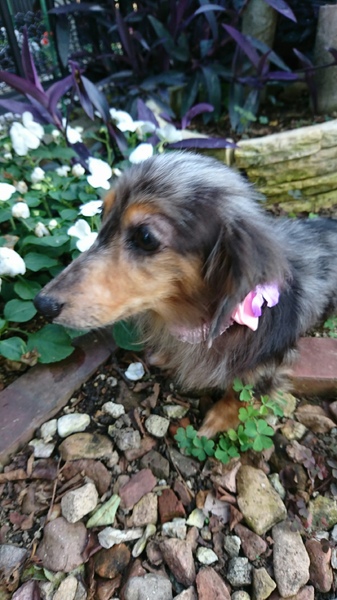 | 特徴(性格など) | カニヘンダックスの女の子、わかばちゃんです。 被毛の色は、ダップルです。 右目が白く(よーくみてるとビー玉みたいできれいです)見えていないようですが、もう一方は大丈夫なので生活に支障はありません。 他にも、両足パテラで、はずれたままでいざるように歩いておりました。 これらは、無理な繁殖による先天的なものだそうです。 両そけいヘルニアもあり、ひどい環境にいましたので皮膚病にもかかっていました。 ハンデや、つらい状態にあるにもかかわらず、保護した時からしっぽピコピコ、性格二重丸!のかわいい子です♪ 栄養をつけ、投薬や頻回のシャンプーで皮膚病は完治し、ヘルニアは手術でふさぎ、 足も、手術していただき、ぎこちないですが、走れるようにまでなりました。 今、自由に歩けること、走れることが楽しくて生き生きしています。 一緒に保護した子たちより出遅れましたが、長居した分おトイレもほぼ覚え、いたずらも覚えましたので^^ 準備万端! わかばちゃんの、幸せ探しはじめます~♪ |