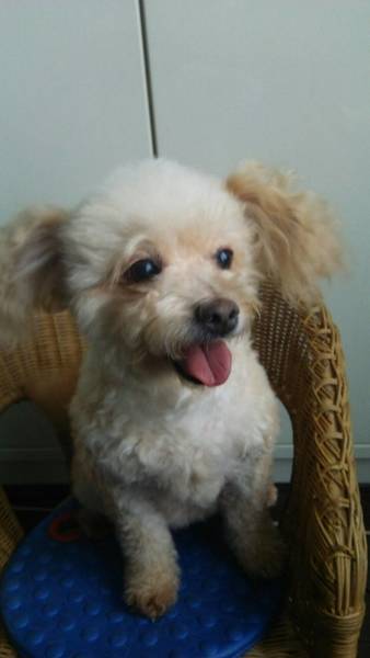 | 特徴(性格など) | ■特徴(仮の名前:きなこ) マルチーズ×トイプードルmix♀推定6~8歳 体重6キロ(要ダイエット) ■性格、暮らし ・人が大好きで甘えん坊です。 ・何処を触っても大丈夫です。 ・お散歩は大好きで、他犬に攻撃性、吠えはありません。 ・トイレシートの認識ありますが、練習中です。 ・気管支が細くゼイゼイしますが、とても元気で生活に支障ありません。 ・お留守番が苦手な為、お留守番の短いご家庭希望。 ■今までに行った医療行為 ・フィラリア抗原検査(-) ・混合ワクチン ・血液検査 ・検便 ・狂犬病予防ワクチン ■今後行う予定の医療行為 ・マイクロチップ ・避妊手術は済んでるか不明なので様子をみています。 |