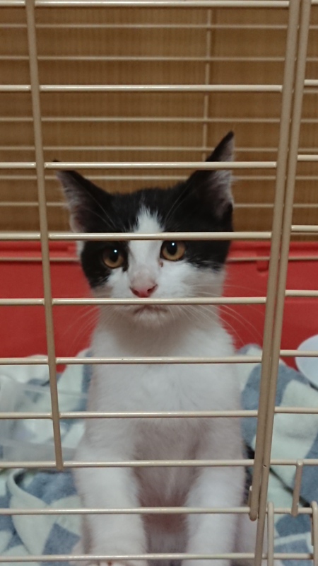| 特徴(性格など) | 白×黒のミックスです。 食欲もあり元気いっぱいです。 |