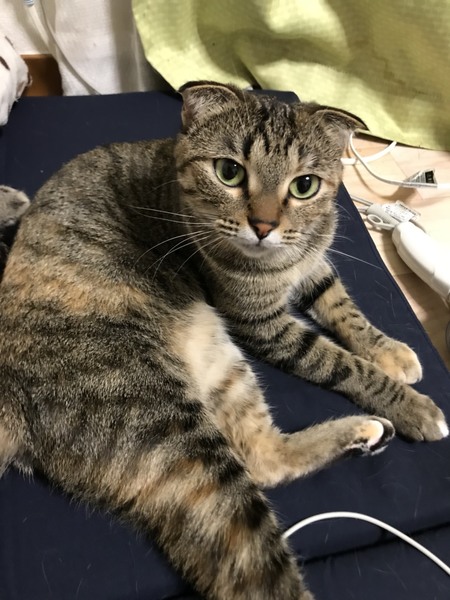 | 特徴(性格など) | とにかく構ってほしくてすりすりしてきます。人懐っこくて甘えん坊です。 スコティッシュフォールドと雑種のミックスです。 |