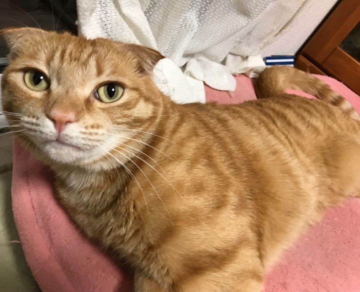| 特徴(性格など) | 体は大きいですが、甘えん坊です。 ぷにぷにして触り心地はたまりません! スコティッシュフォールドと雑種のミックスです。 |
