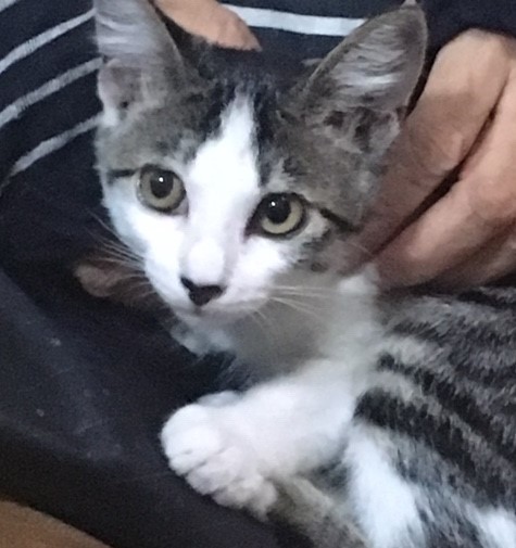 | 里親募集する理由 | 野良猫の母猫から離れたのか、迷いネコで保護されました。 保護されたおうちは、飲食の商売をされていて飼えないので、里親探しすることにしました。 |