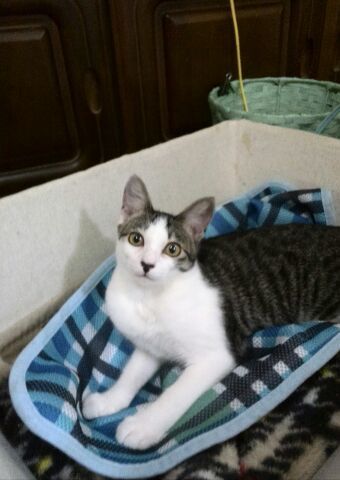 | 特徴(性格など) | 白キジの可愛い女の子です。 お鼻の黒いところがハートマークに見えます。 保護当時はおとなしかったのですが、慣れてお転婆になってきました。とてもいい子です。 今、預かり主さんのおうちで5匹のニャンコたちと仲良くしてます。 |