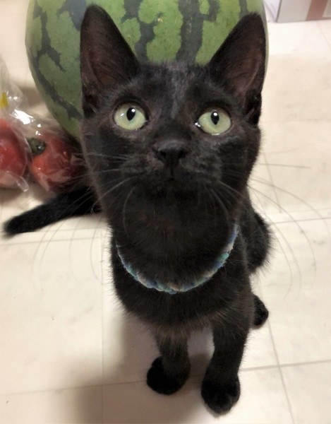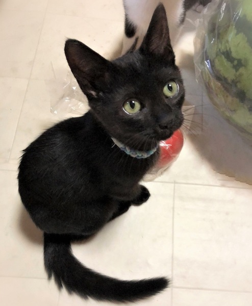 | 特徴(性格など) | 仮名、ディジー つやつや黒い女の子。 環境に慣れるまで数日必要です。 慣れてしまうと抱っこでたるんたるん、されるがまま骨なし甘えん坊に 大きい猫とも仲良く過ごせる子です。 |
