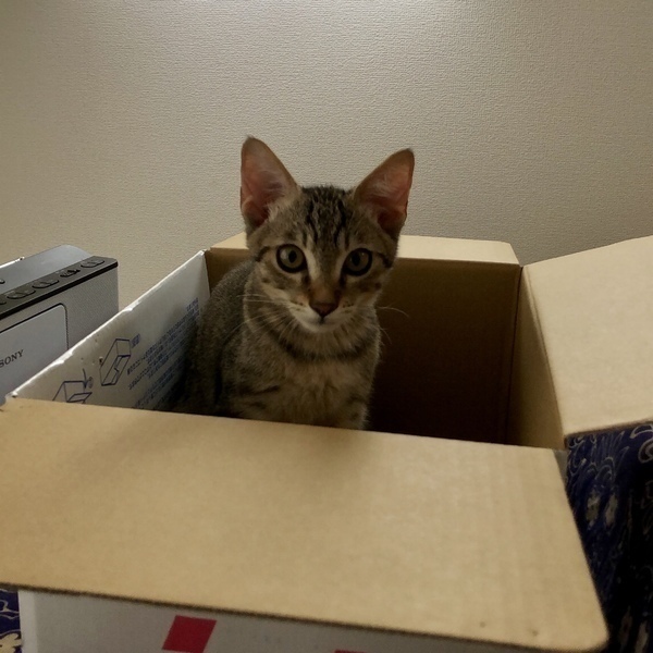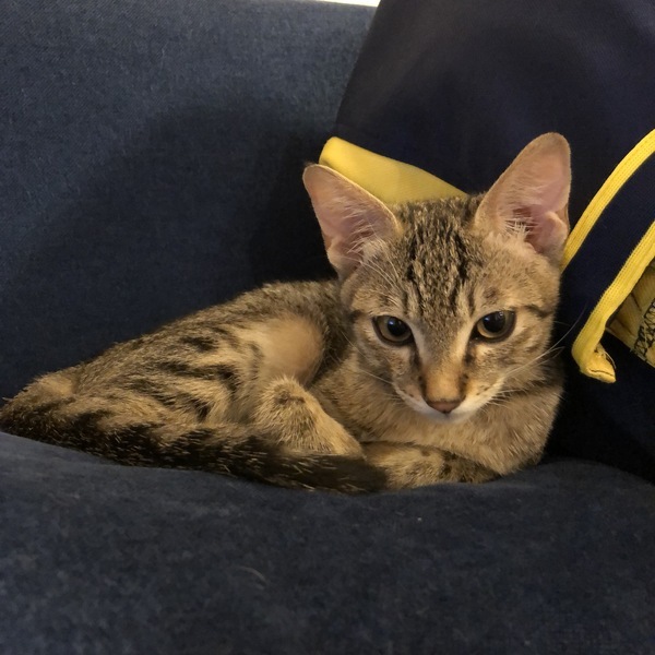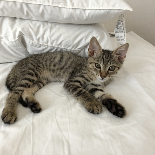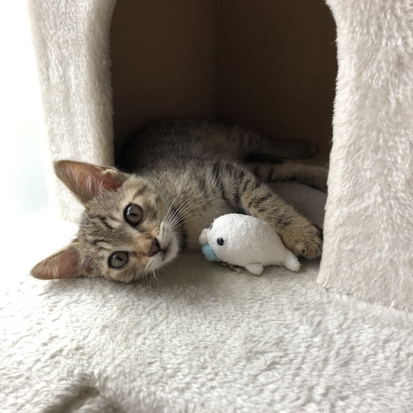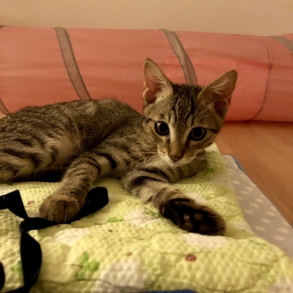 | 里親募集する理由 | 7月1日に、家の前の道路で保護しました。周りに母猫も兄弟も見当たらず、弱りきっていたところを保護しましたが、今ではすっかり元気になりました! 我が家の賃貸契約が1匹までで、既に先住猫がいるため、里親募集をしています。近くの保護猫カフェやチラシで里親募集をしていますが、こちらにも掲載させていただきました。 |