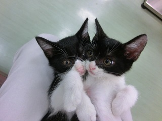 | 特徴(性格など) | 生後1,5ヶ月くらいの兄妹で、鼻の白さの大きさでしか区別できないほどそっくりな可愛い子猫達です。 鼻の白いのが多いのが男の子、少ないのが女の子 とても仲良しでよく遊びよく食べ元気いっぱいです。 シャンプー・ノミダニ処置・虫下し処置は済んでいます。 ワクチンはまだ小さいので様子を見て打つつもりでいます。 出来れば兄妹で新しいお家に行ければと思います。 |