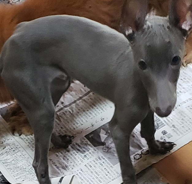 | 特徴(性格など) | 毛色はグレーです。まだまだ子犬ちゃんなので躾は全てこれからになります。 凄く元気で毎日走り回っています。 |