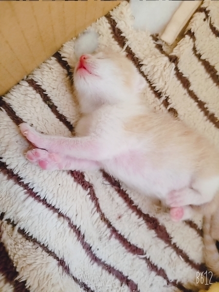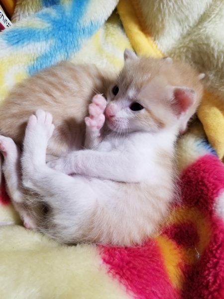 | 特徴(性格など) | 茶トラでお腹の方は白いです!お乳を飲むのが上手で、鳴き方は女の子らしく控えめで大人しく、よく寝るし寝相が悪くて可愛いです!母猫に似て美人になると思います(*^^*) | ||
