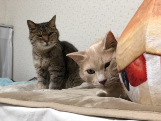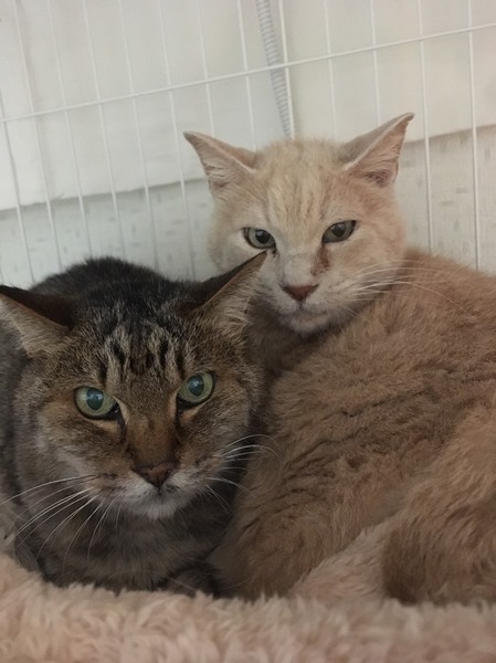 | 特徴(性格など) | コキナコ/ミルクティー色の膨満ボディ。賢く、穏やかで強い子です。今まで人にシャーを言ったり、手をあげたりしたことがありません。お外でしか暮らしたことがないので、甘え方はわかりません。不器用ながらも彼なりに理解をして、慣れようとする健気な進歩を見守ってくださるご縁を探しています。みたらしのことが大好きで、ずっとみたらしを守ってきたボスでもあります。 みたらし/キジトラの小柄男子。ちょっとナヨっとしています。人が大好きでものすごい甘えんボーイ。すりするなめなめ、すきあらばぶつかり稽古を求めてきます。預かりさん曰く「幼児みたい笑」…はい、まさに幼児で「あのね、あのね・・・えと、なんだっけ。まぁいっか。甘えてもいい?」という感じの子です。コキナコのことをとても頼りにしていて、甘えていてもちょっと戸惑うことがあったり、困ったらすぐに「コキナコーーー」と飛んでいきます。 ふたりともりんご猫ですが、調子を崩すことなく、元気に暮らしています。 |