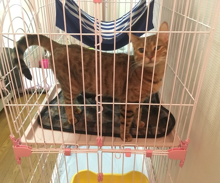 | 里親募集する理由 | 迷い猫として保護、かなり人馴れしていましたので警察等、関係各所へ連絡しましたが飼い主は見つかりませんでした。 我が家には3匹猫がおり、うち1匹は心臓を患っていて治療のため、この仔に充分な環境を与えることが出来ません。 (現在は3階建てケージで保護しております) |